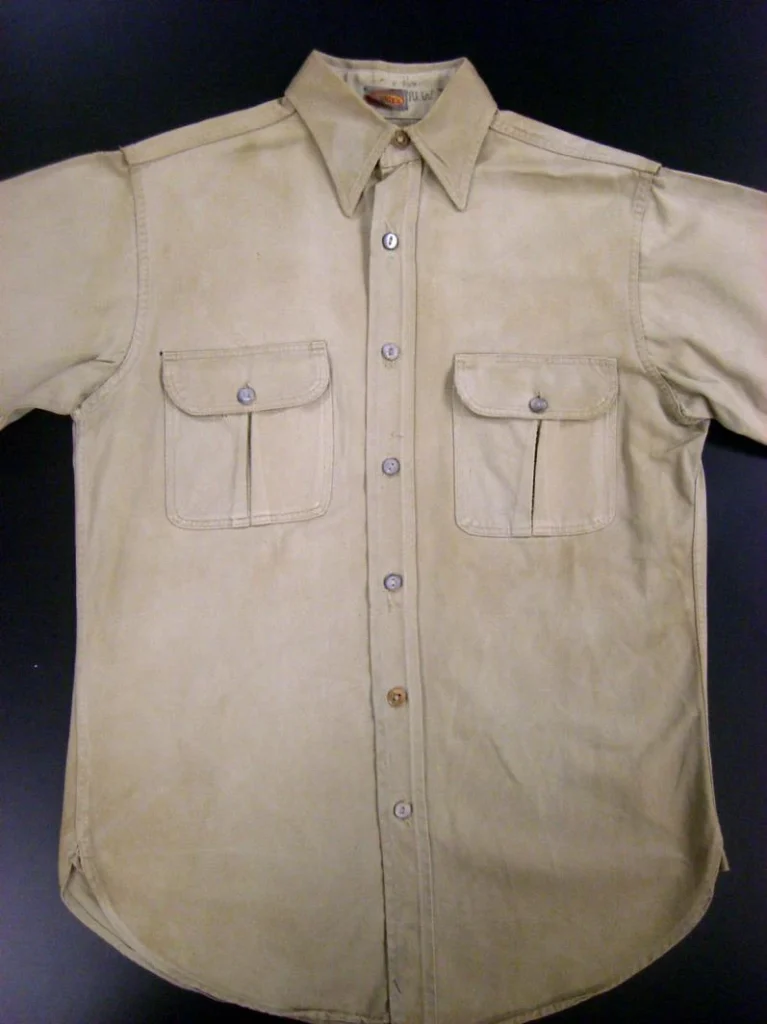 50 年代:衬衫升级为可翻折衣领、无门襟设计,采用包缝工艺