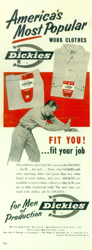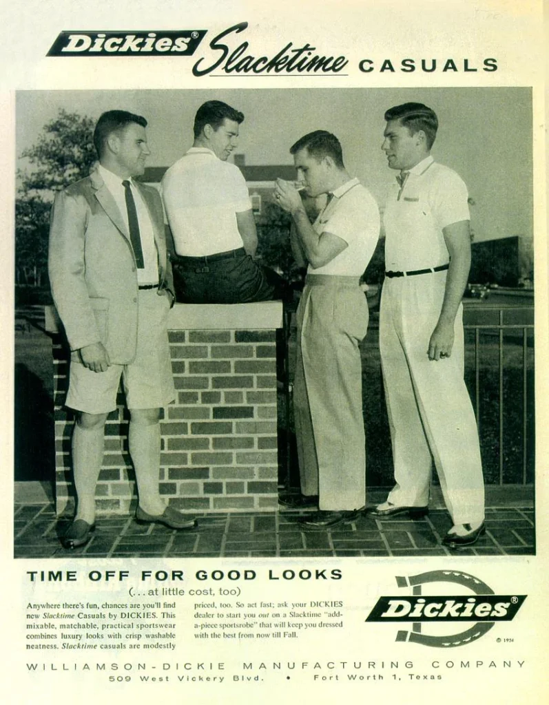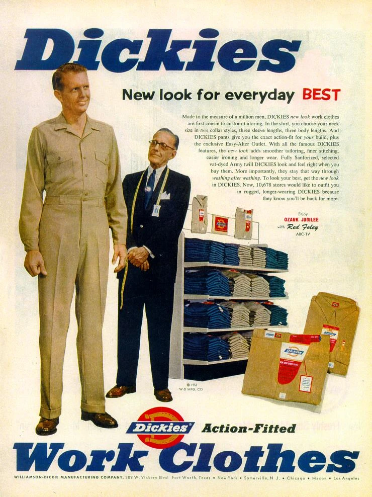 1955 年:推出 Dickies Steadies 系列,搭配丽特牌亮色染料;成为全球最大